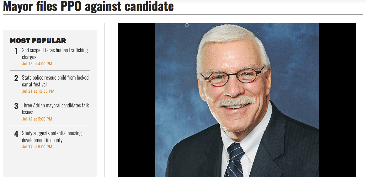 Any politician that silences a citizen’s First Amendment right should be questioned and scrutinized. Shane Mackey is running for the Adrian City Commission. What happens if he wins? Would the PPO be discontinued or would Mackey be barred from serving the very people that elected him to office? That is a question we won’t have to answer if Berryman is no longer the cowardly mayor he has been.