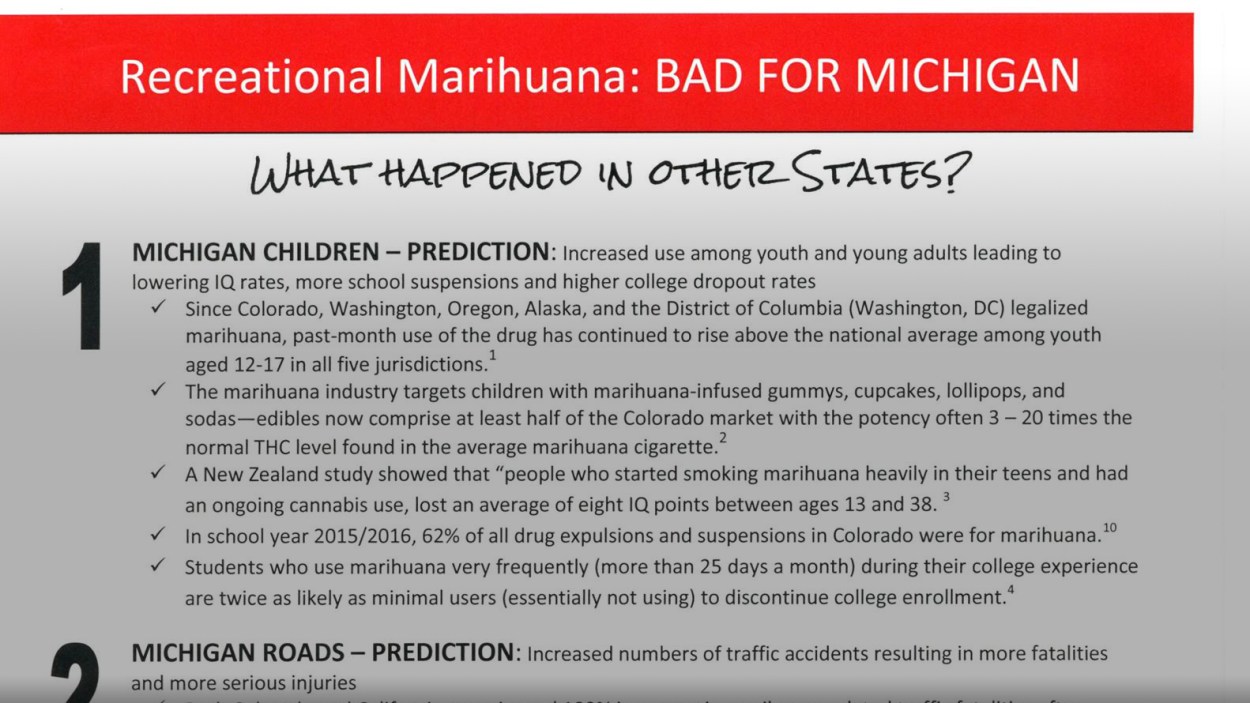 On Nov. 6, Michigan voters will head to the ballot box to decide the fate of Prop 1 – legalizing the use of recreational marijuana. We’re more than a month away from the election, and opponents to the proposal are coming out in full force.